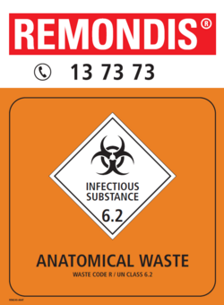 Anatomical waste bins are generally yellow with an orange lid and orange label.